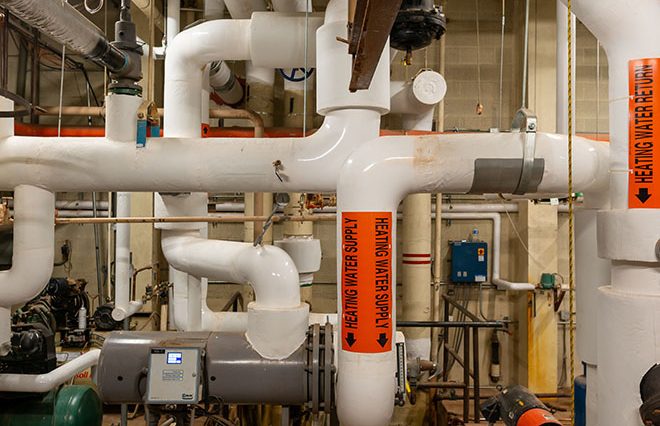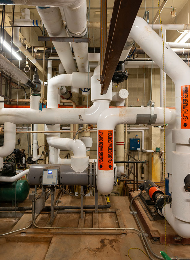 Chilled-water and heating-water piping systems serve 5 new air handling units